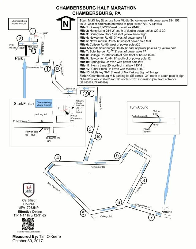 Start/Finish is at CAMS South Middle School in the Chambersburg Area School District.